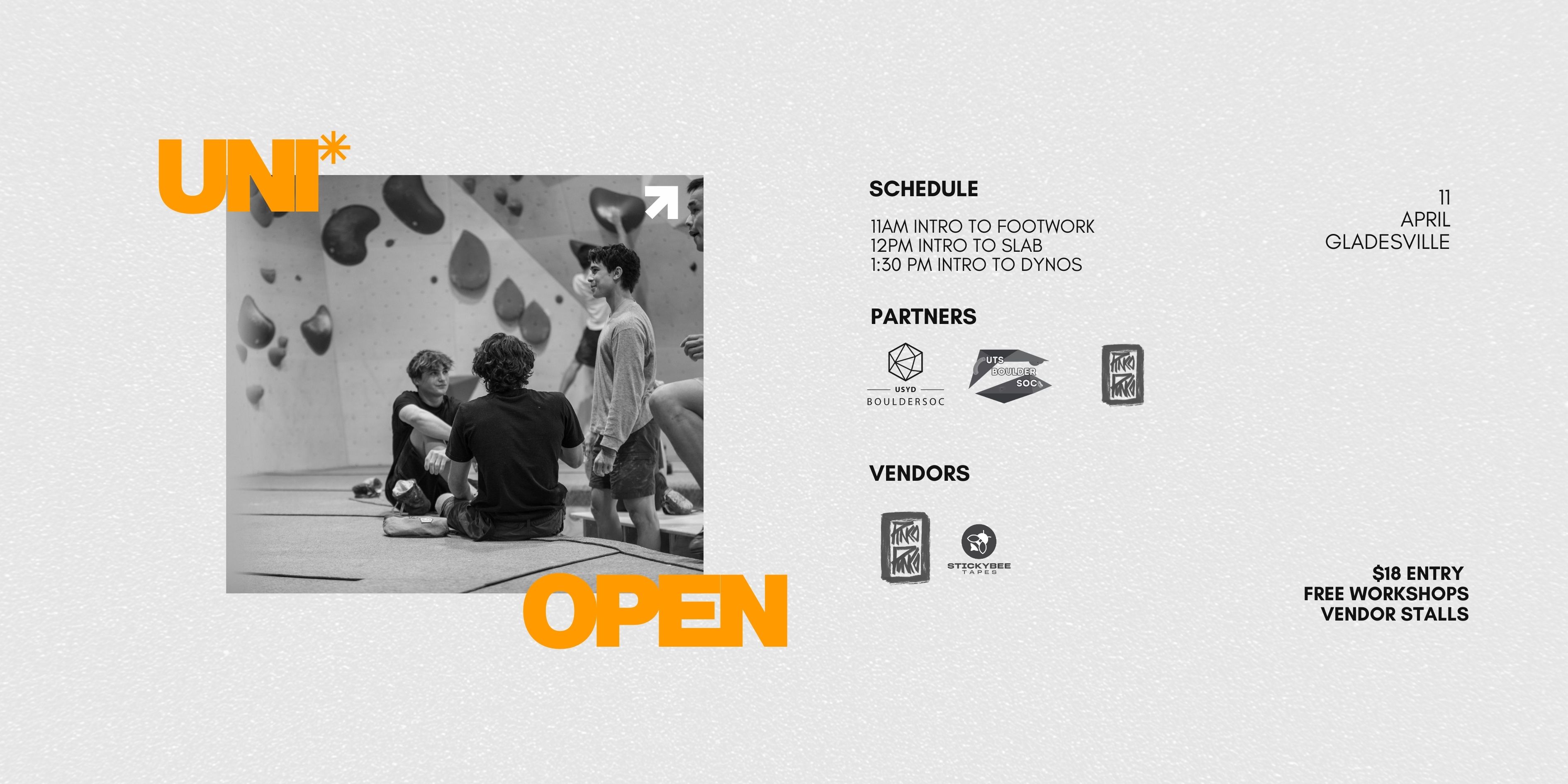 - $16 for UTS Boulder Society & UNSW Boulder Society members (shoes not included)